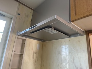 プロペラファンからシロッコファンのレンジフードへの交換工事を行いました。